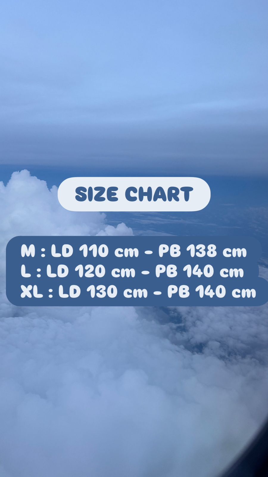 SIZE CHART - M : LD 110 cm , PB 138 cm - L : LD 120 cm , PB 140 cm - XL : LD 130 cm , PB 140 cm On model pakai sz M , BB 58 kg, TB 158 cm