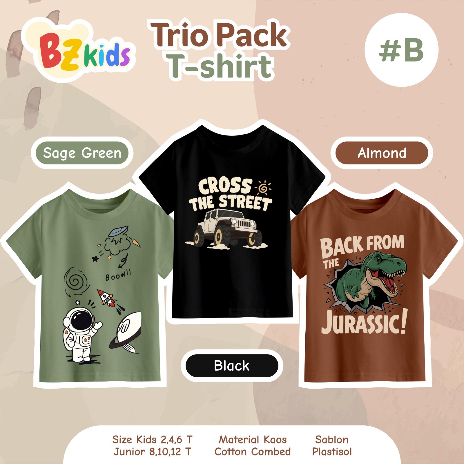 2. Pack B (laki-laki ): Sage, Black, Almond