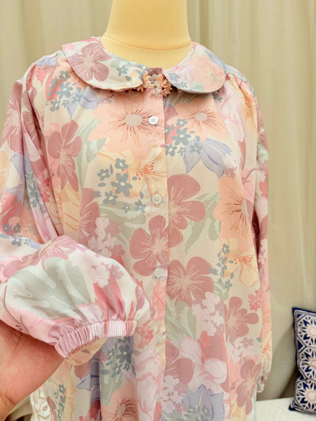 🗒️ SPESIFIKASI - Bahan : katun rayon - Kerah kupu kupu - Full kancing (busui friendly☺️) - Tangan karet (wudhu friendly) - Berat produk : 250 gr - Uk. Allsize - LD 130 cm - PB 68 cm - Panjang tangan 50 cm - 5 warna 1. Lily 2. Haruka 3. Naura 4. Sunflower 5. Belva